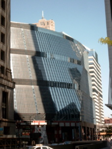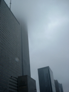A skyscraper in clouds